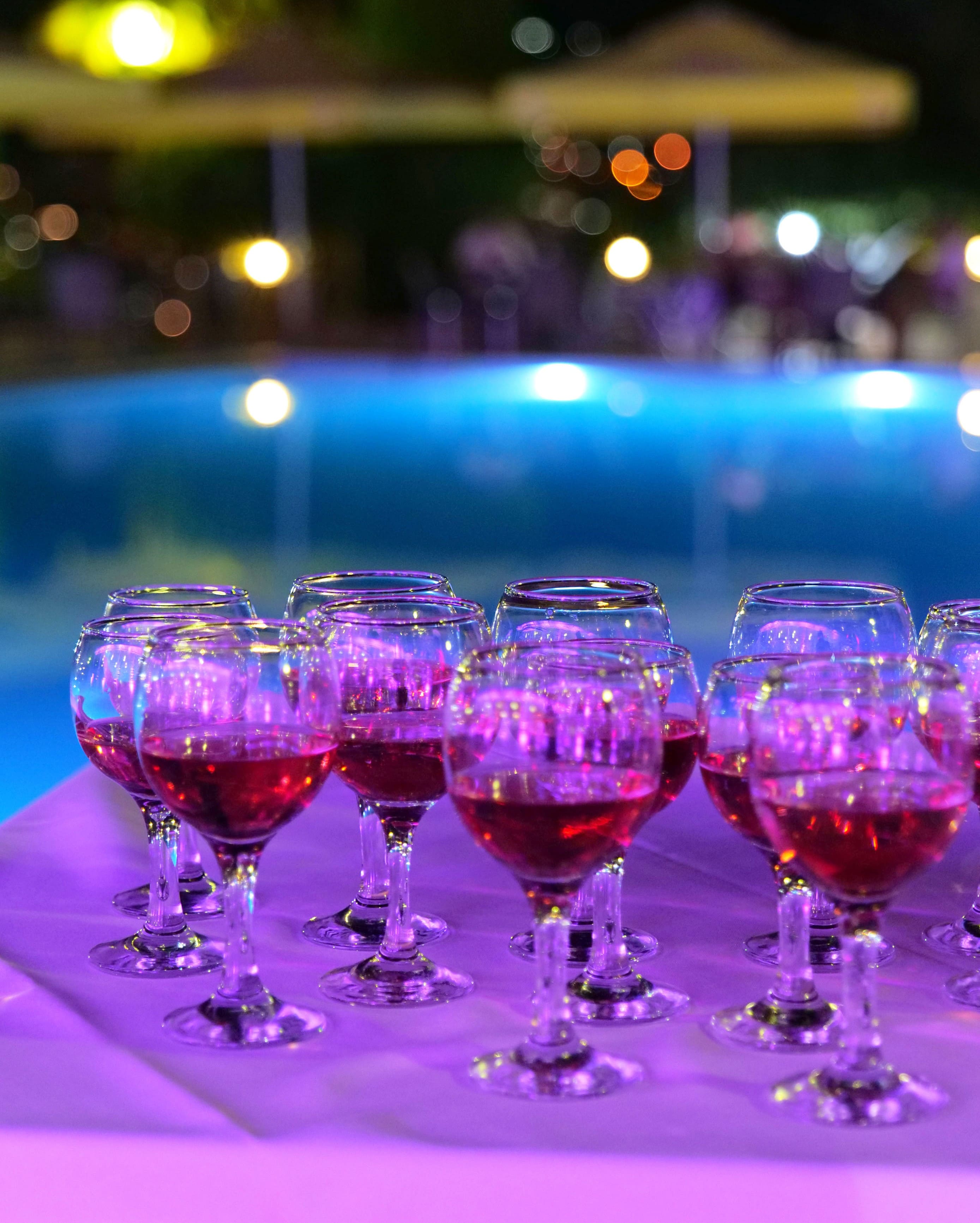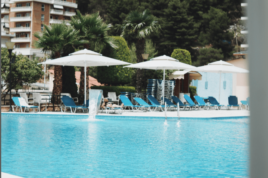 Indulge in serene luxury at our hotel's private pool, where crystal-clear waters glisten under the sun, surrounded by lush greenery and offering an intimate oasis for relaxation and rejuvenation.